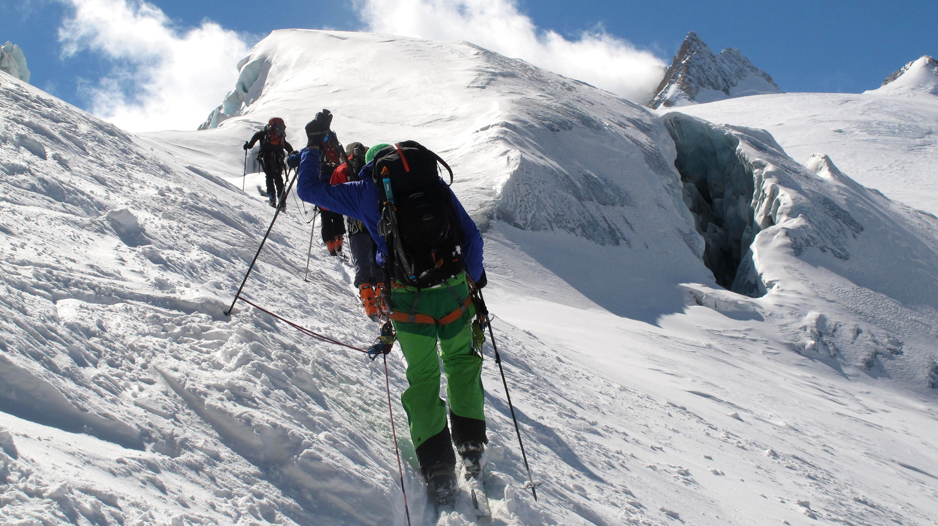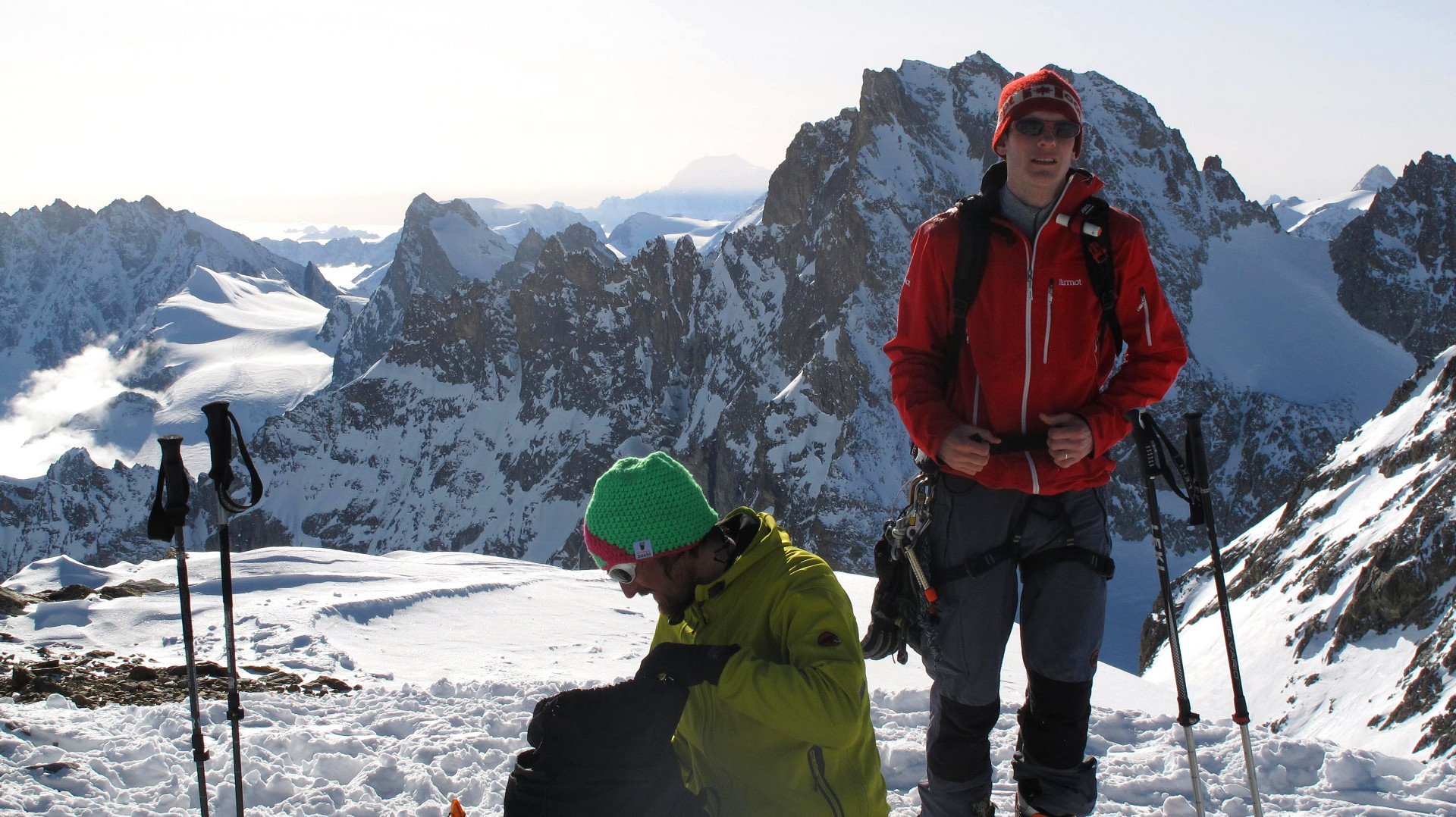 We are back from a one week hut-trip traversing the Alps from Saas-Fee (CH) to Argentière (FR): Unfortunately weather and snow situation were not on our side. Out of eight, we only had two bluebird days. On the others poor visibility, partly snowfall and often strong wind overweighed.