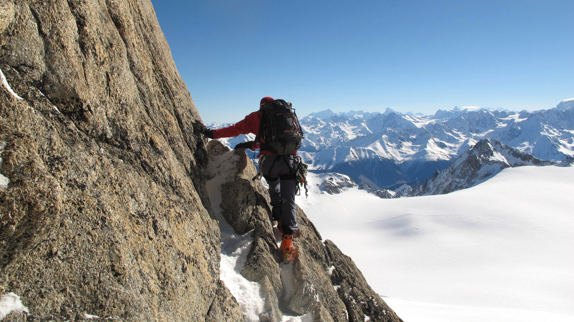 The Haute Route ski tour is probably the most famous and coveted ski tour in the world. Using high mountain huts to allow skiers to stay high and cover substantial distances, it winds through the highest, most dramatic peaks of the Alps from Mont Blanc to the Matterhorn. It requires good weather, favourable snow conditions and strong effort to complete this line. Because of this, roughly half of the skiers who begin the tour do not complete it.