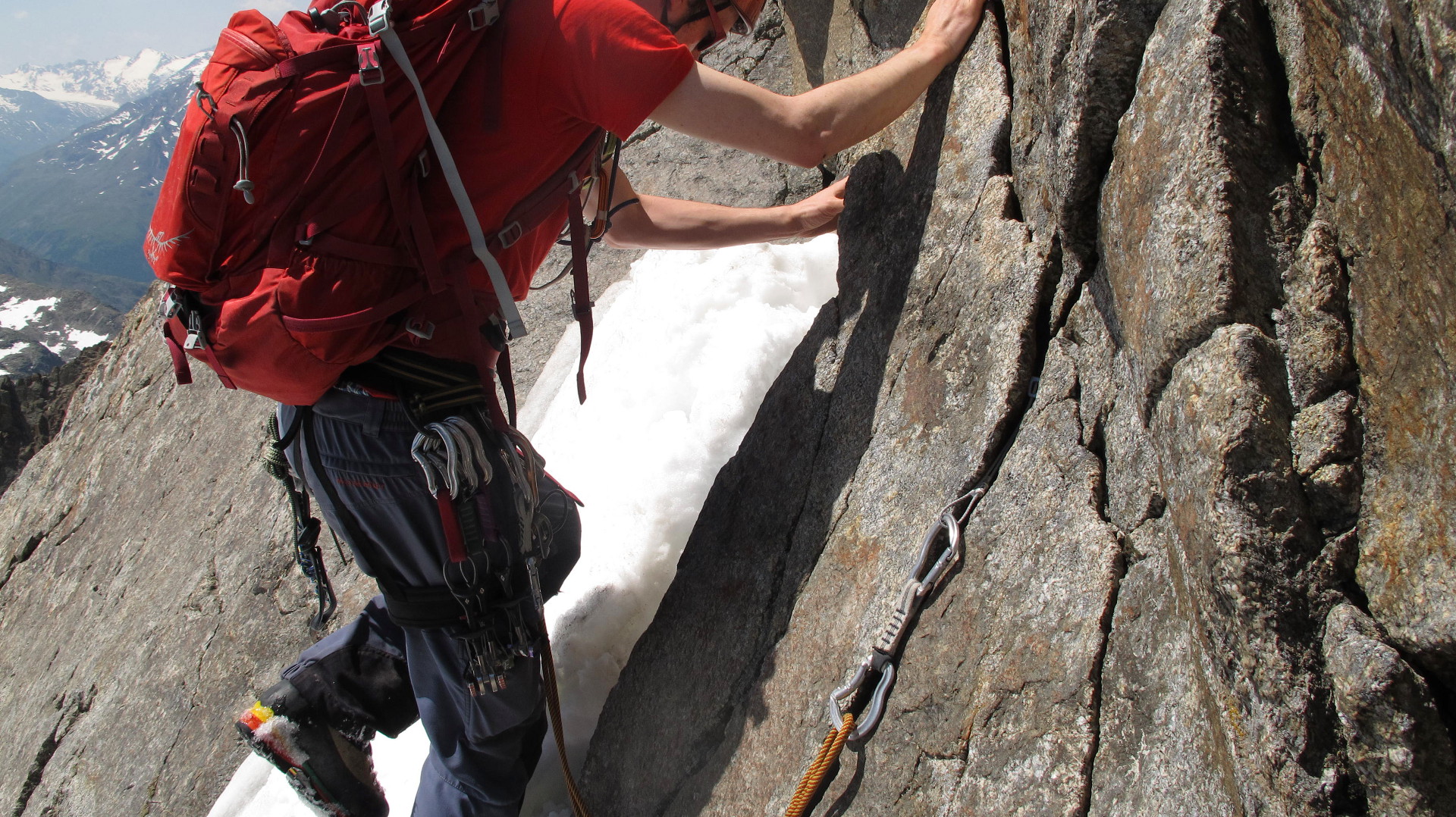 IMG_2875 8. July 2015 • 1920 × 1078 • Granite fever The E-ridge is not equipped with any in situ gear, but always easy to protect (slings, stopper, cams)
