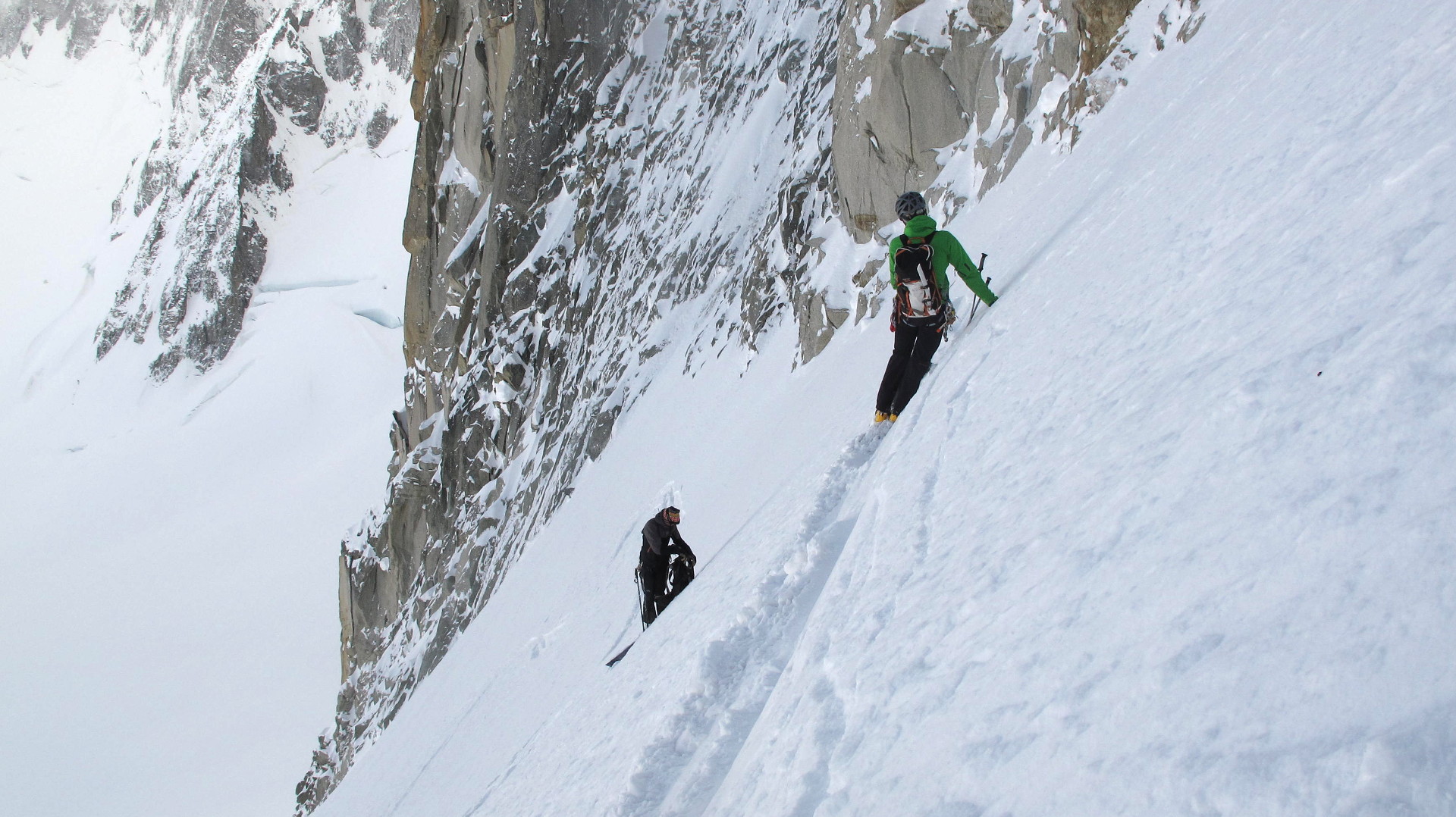 IMG_4600 17. April 2016 • 1920 × 1078 • Col des Cristaux After the dogleg where we took shelter: Not as steep as the top, but still a little scary.