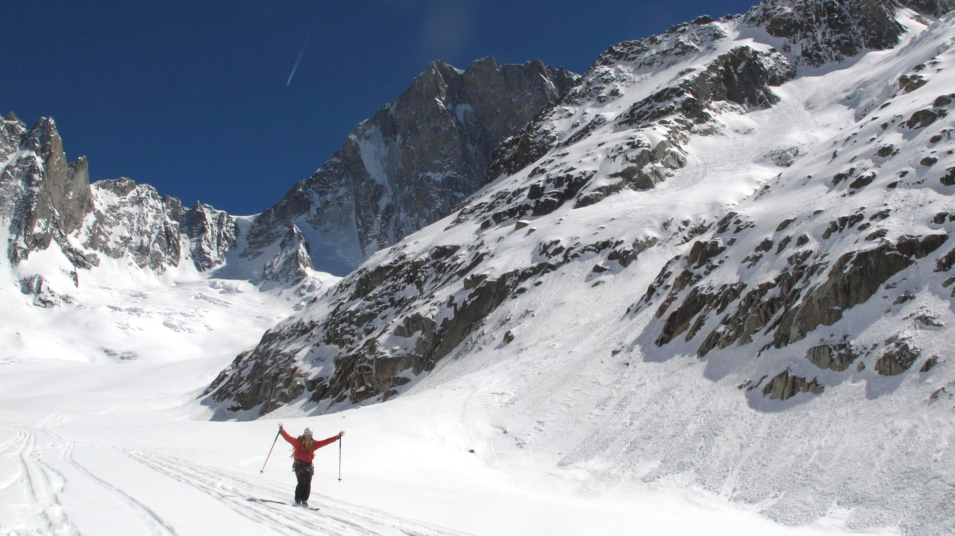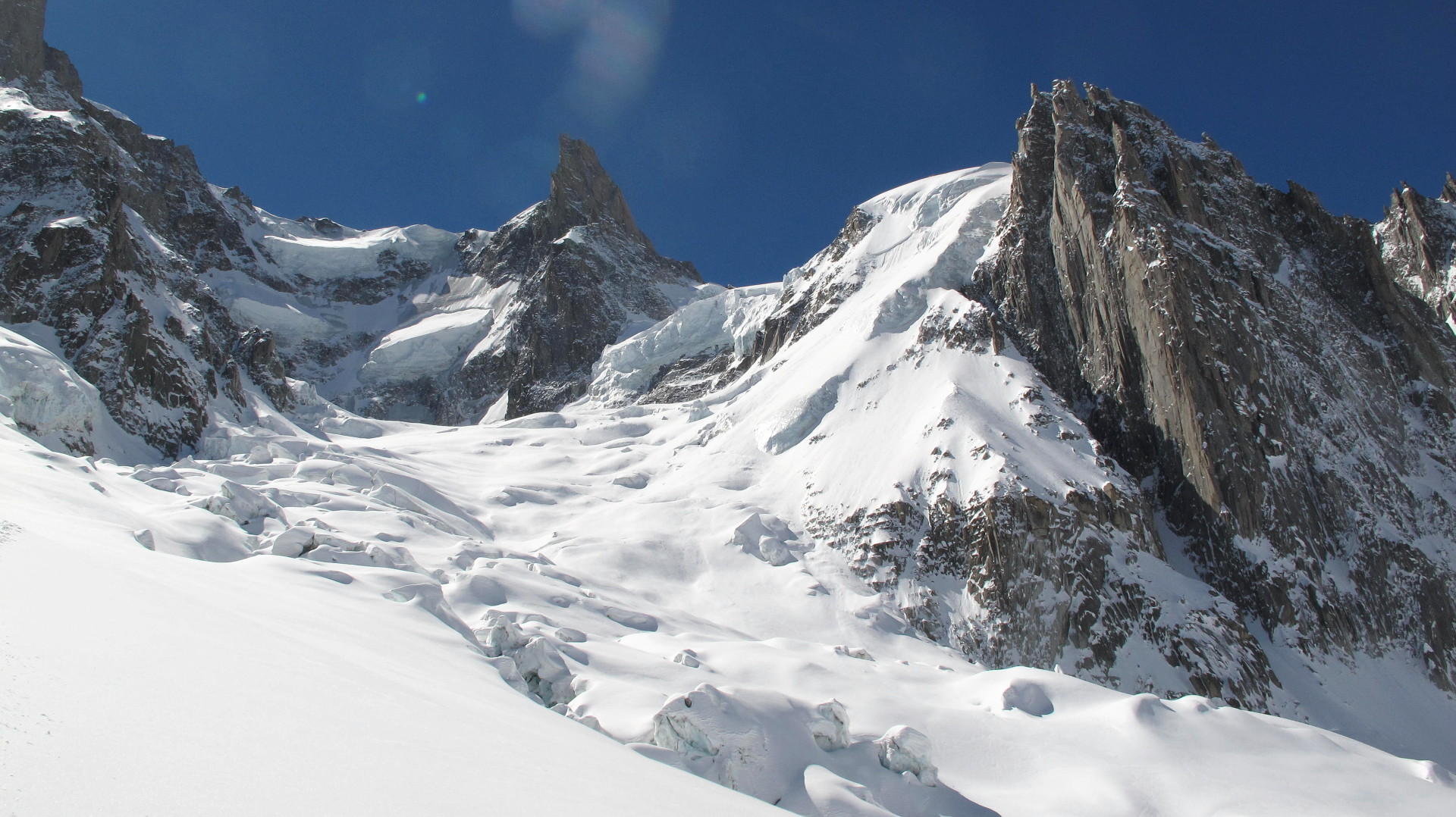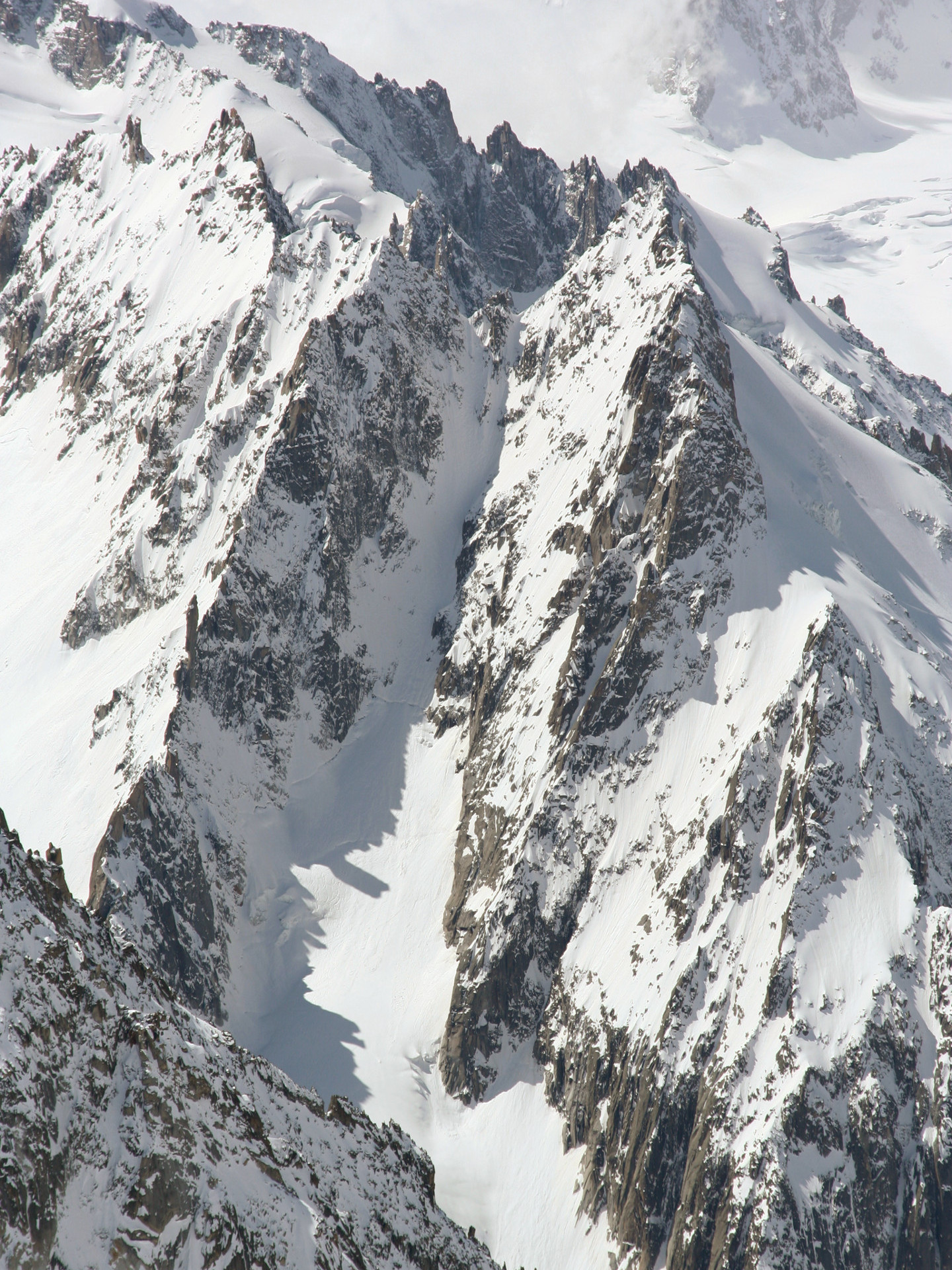 It is spring in Chamonix and finding good skiing becomes a bit difficult. The last snowfall came with strong wind, and everything that faces the sun for at least a couple of hours is sliding off.