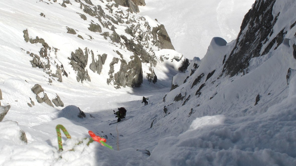 IMG_5776 4. May 2016 • 1920 × 1078 • Col du Tacul – traverse The first meters after our 40m rappel are still 55°