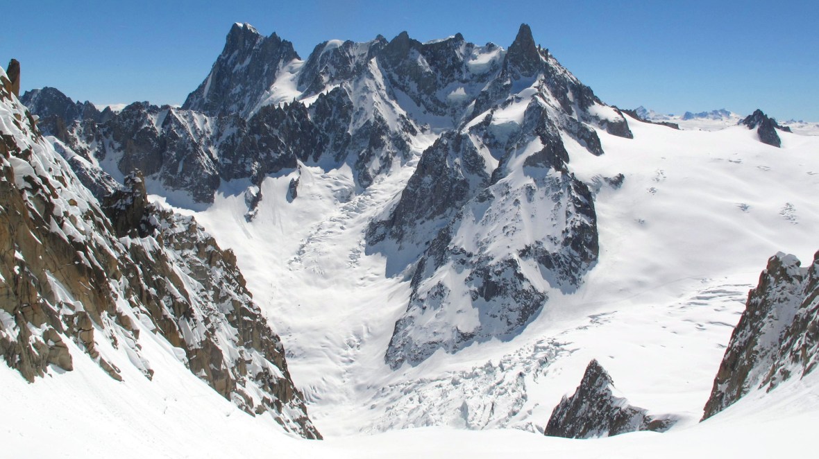 IMG_5906 7. May 2016 • 1920 × 1078 • Aiguille du Plan Nice view over to the Periades Glacier (Grandes Jorasses, Rochefort, Dent du Geant)