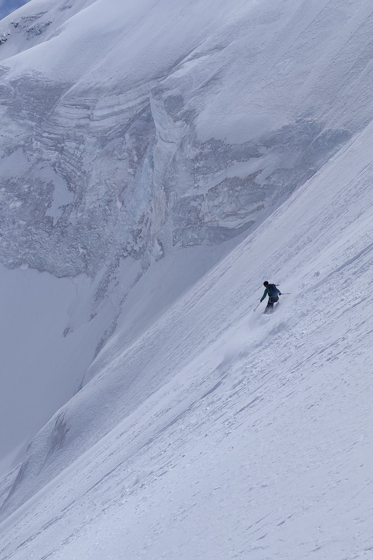 However, as we started to climb the summit ridge, the weather took a turn. Thick clouds obscured the face, making it impossible to assess the snow conditions or navigate the intended route. Faced with these unforeseen circumstances, we were forced to make the prudent decision to descend via the same route.